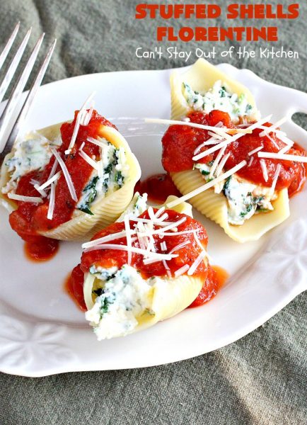 Stuffed Shells Florentine has such a delicious combination of flavors. It has a lot of cheese so it’s rich, but wow, it’s amazing!