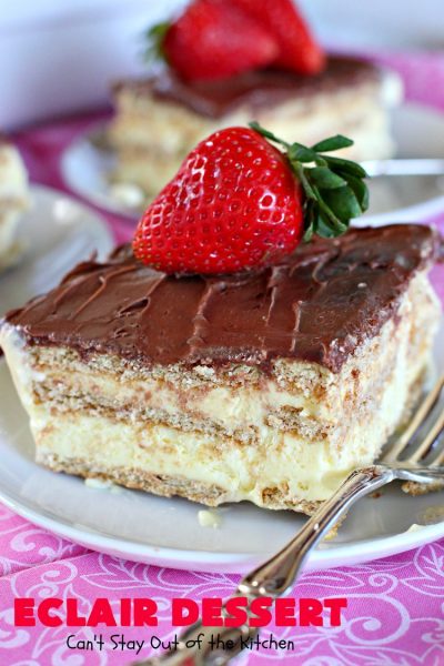 Eclair Dessert is a fabulous, light and creamy, dessert that tastes just like eating eclairs!