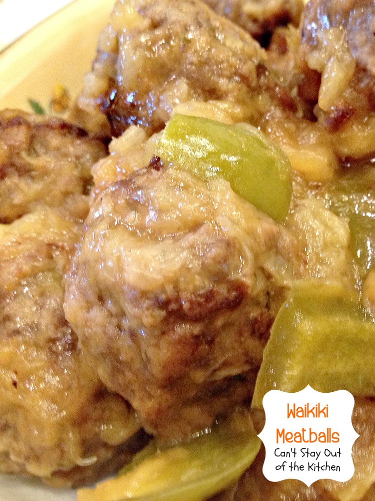 Waikiki Meatballs – Recipe Pix 25 611November 15, 2014Teresa AmbraWaikiki Meatballs | Can’t Stay Out of the Kitchen | these tasty #meatballs are combined with #pineapple and #greenpepper in a lovely soy and ginger sauce. #beef #asian