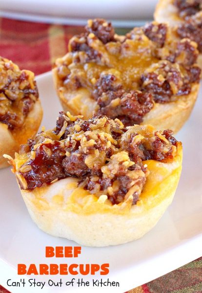 Oh, my Beef Barbecups are heavenly and a great option to take along to soccer games, potlucks, tailgate parties, or for superbowl parties. Guys really love this hearty appetizer. They’re hearty, filling and a very satisfying comfort food on Saturdays when you want to watch sports or movies on television.