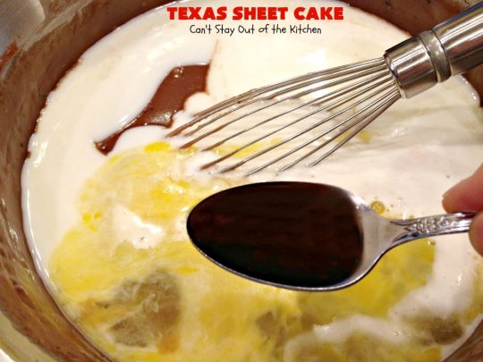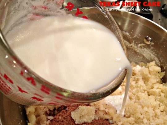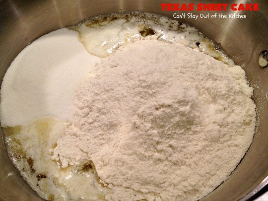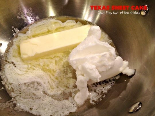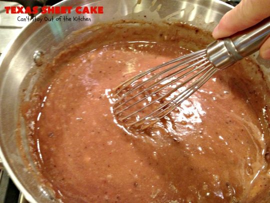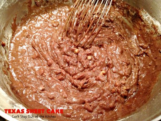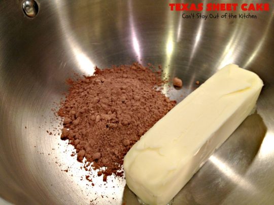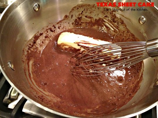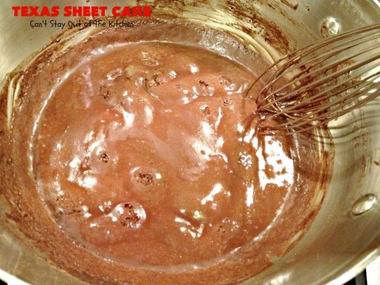 Texas Sheet Cake is a cake for chocolate lovers! This is one of the few cake recipes I’ve ever made where you actually cook part of the ingredients on the stove top before baking the cake.