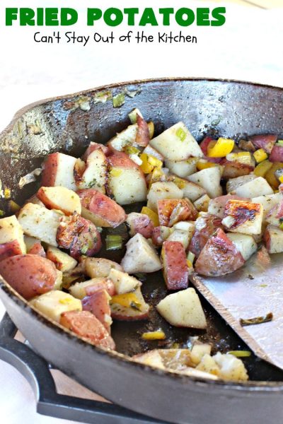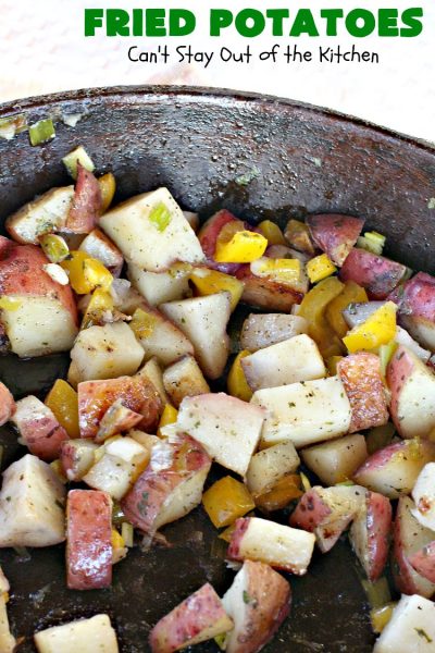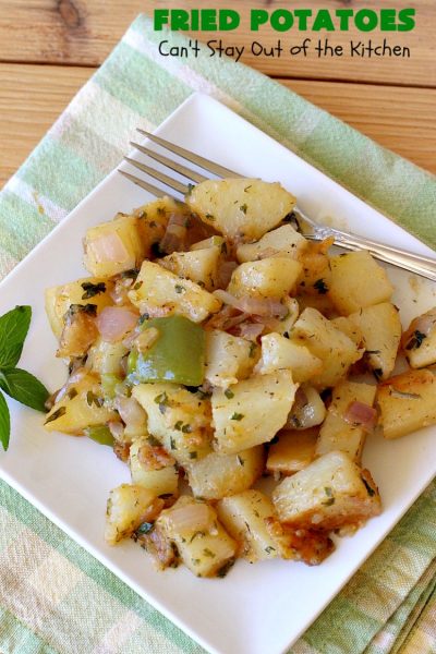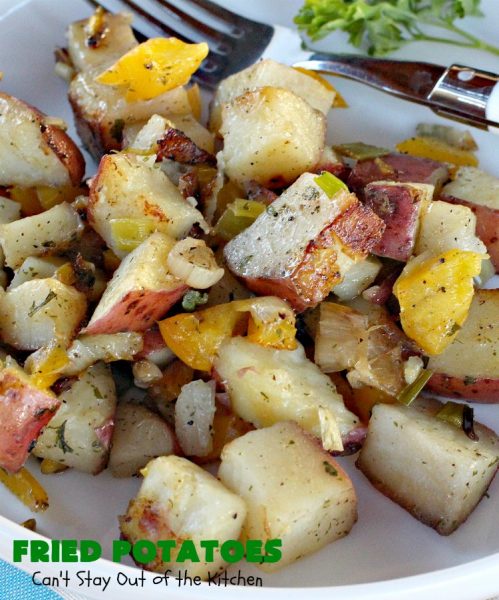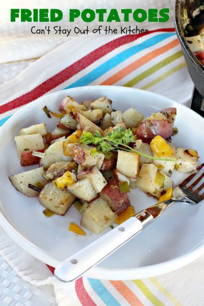 I served Fried Potatoes as a “Breakfast for Dinner” side dish with Sausage Apple Pancakes.
