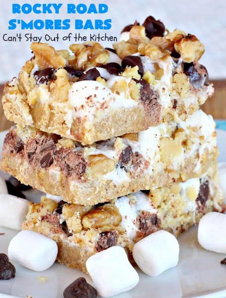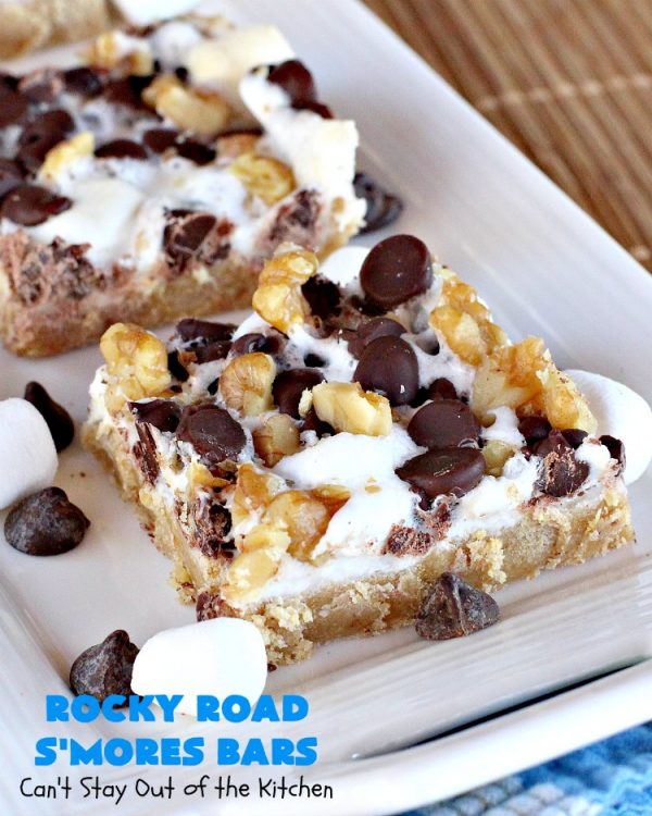 Don’t forget to make a batch of Rocky Road S’Mores Bars for the holidays, too. They’re also an excellent choice for special occasions like birthdays, anniversaries or baby showers. Everyone will want one, or two, or three!