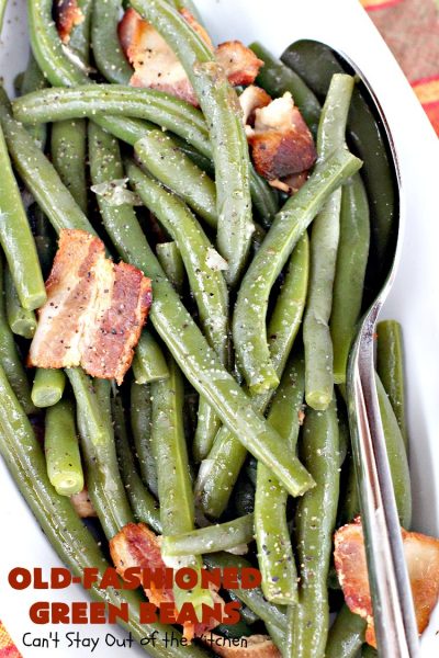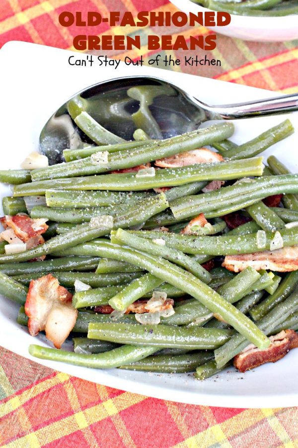 Old-Fashioned Green Beans | Can't Stay Out of the Kitchen | my Mom's simple & easy recipe. Her's is made with #bacon. Great side dish for family dinners, #FathersDay & other #holidays. #greenbeans #glutenfree