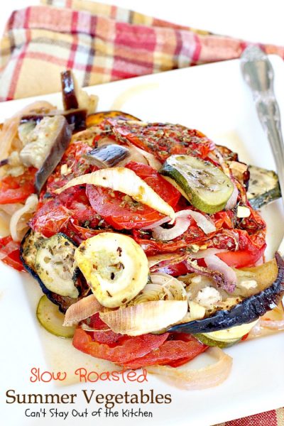 Give Slow Roasted Summer Vegetables a try – not just in the summer, either. This dish can be made anytime of the year because most of these veggies can be purchased year round these days. If you have a garden it’s a great way to use up garden produce, too.