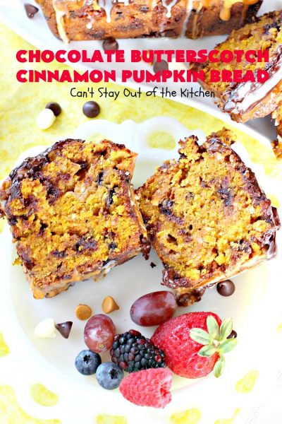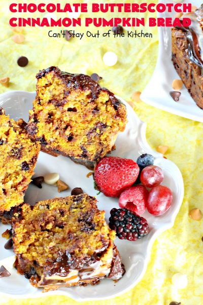 Doesn’t Chocolate Butterscotch Cinnamon Pumpkin Bread look terrific?