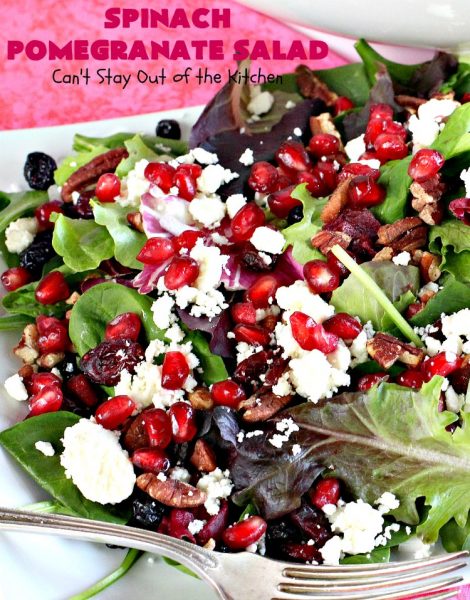 This delicious Spinach Pomegranate Salad has a tasty dressing that enhances all the flavors so wonderfully.