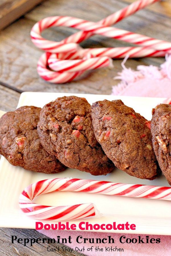 Double Chocolate Peppermint Crunch Cookies are great cookies for holiday parties, Cookie Exchanges and gift giving.