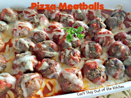 Pizza Meatballs – IMG_4891.jpgJuly 15, 2014Teresa AmbraPizza Meatballs | Can’t Stay Out of the Kitchen | Quick and easy #meatball recipe to serve over your favorite #pasta. These are stuffed with #montereyjackcheese. #spaghettisauce #pizza #beef #maindish
