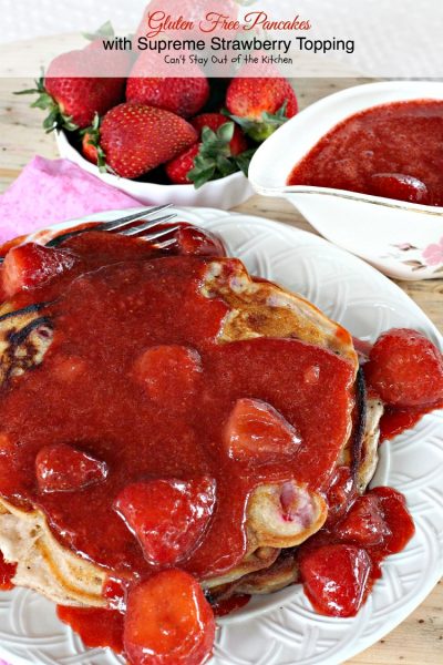Gluten Free Pancakes with Supreme Strawberry Topping | Can't Stay Out of the Kitchen