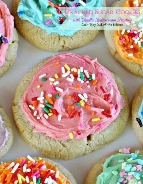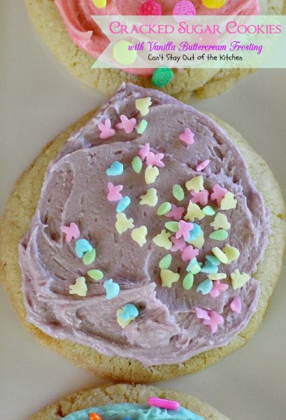 Cracked Sugar Cookies with Vanilla Buttercream Frosting are to die for! These cookies are rich and decadent because they have so much sugar in the cookie and the icing.