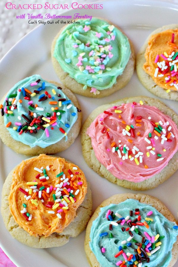 We love Cracked Sugar Cookies with Vanilla Buttercream Frosting and believe you will, too, once you try them!