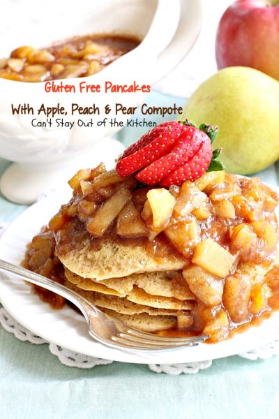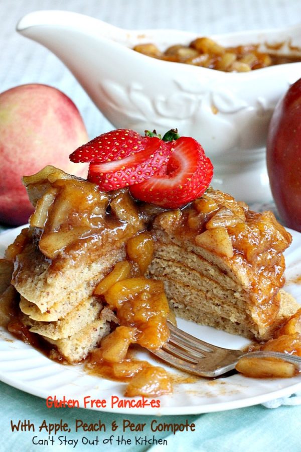 Gluten Free Pancakes with Apple, Peach and Pear Compote is a healthy, gluten free alternative to regular pancakes with corn syrup.