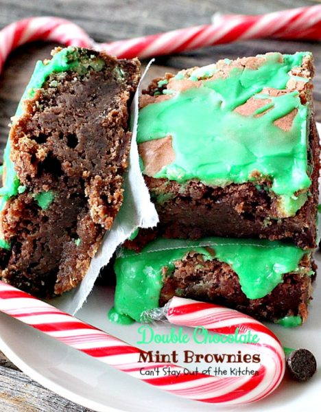 Double Chocolate Mint Brownies are quite easy to prepare and look and taste divine! No one needs ANOTHER recipe for brownies–but here is another one just in case you’re bored with your current recipes! I personally love mint chocolate chips and whenever you combine them in a brownie….well, they quickly become my favorites. So here’s a recipe in honor of St. Patrick’s Day. Enjoy.