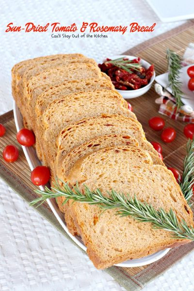 We served this for company a couple of weeks ago and everyone really enjoyed it. I toasted the leftovers and sprinkled them with garlic salt and parsley. Sun-Dried Tomato and Rosemary Bread is really good served as a side to Italian pasta dishes when made this way.