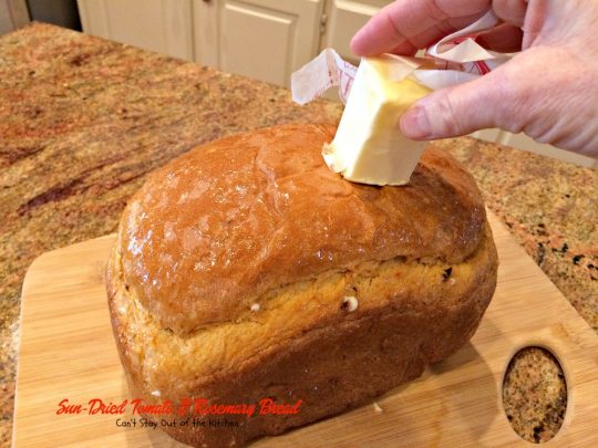 Sun-Dried Tomato and Rosemary Bread is great toasted, buttered, and sprinkled with garlic salt and parsley!