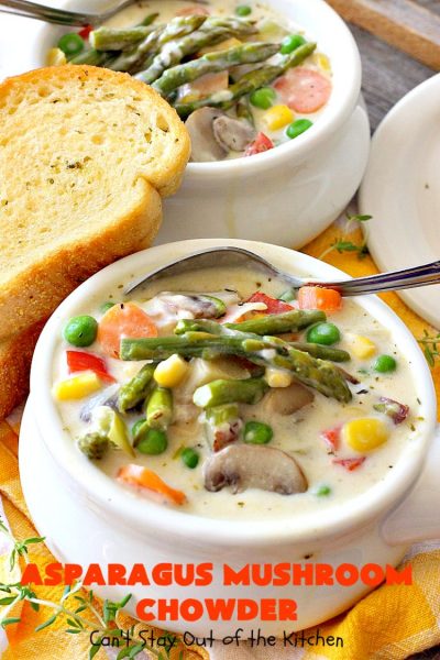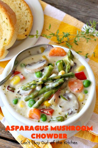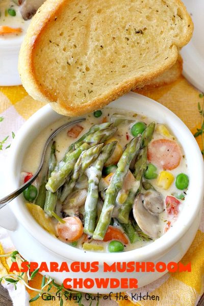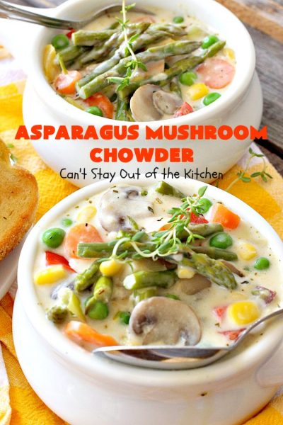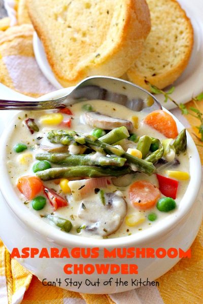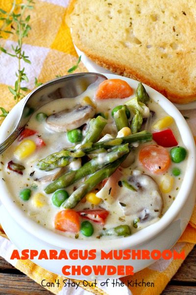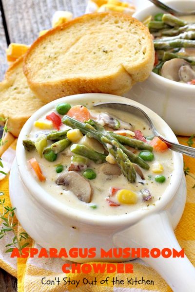 Asparagus Mushroom Chowder is a tasty and delicious soup that’s perfect as a one-dish meal with some of your favorite bread.
