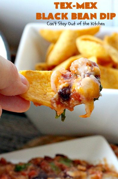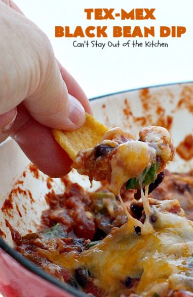 This is a great dip for tailgate parties and watching football or basketball games on television. I warn you in advance, Tex-Mex Black Bean Dip is addictive!