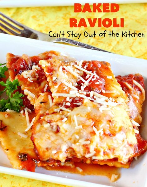 Baked Ravioli with the increased seasonings is a wonderful meatless main dish, but you can use any kind of meat-filled ravioli if you prefer.