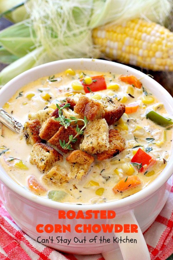 I love this Roasted Corn Chowder recipe! It’s thick and it has great texture with all the veggies. It has amazing flavor due to all the herbs infused with the roasting of the corn, and it’s just such a delightful culinary experience! Your palate will want more and more of this tasty main dish chowder once you taste a spoonful.