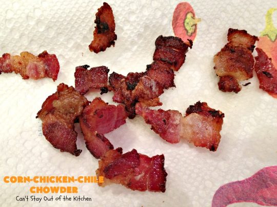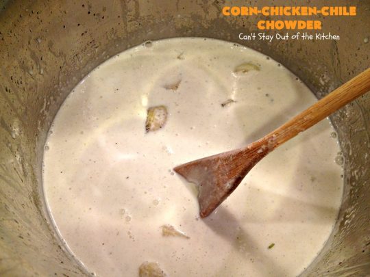I was not the least disappointed with this recipe even though I did make a few changes. First, I cut the cayenne pepper back to 1/8 teaspoon. One-quarter teaspoon is a LOT of cayenne pepper for those who aren’t used to it. Corn Chicken Chile Chowder still has plenty of zip because it also has a can of diced green chilies.