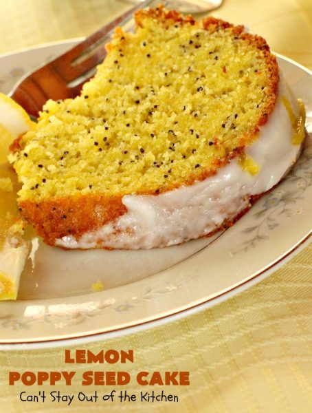 Lemon Poppy Seed Cake is a spectacular cake. It has a strong lemon essence in both the batter and the glaze. I’ve baked Lemon Poppy Seed Cake for desserts as well as for a breakfast coffee cake. The flavors can’t be beat–especially if you enjoy lemon and poppy seeds.