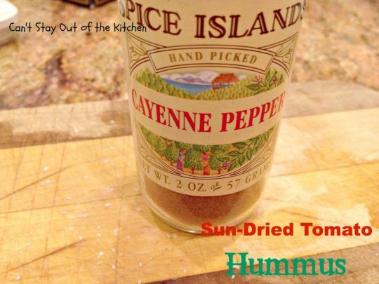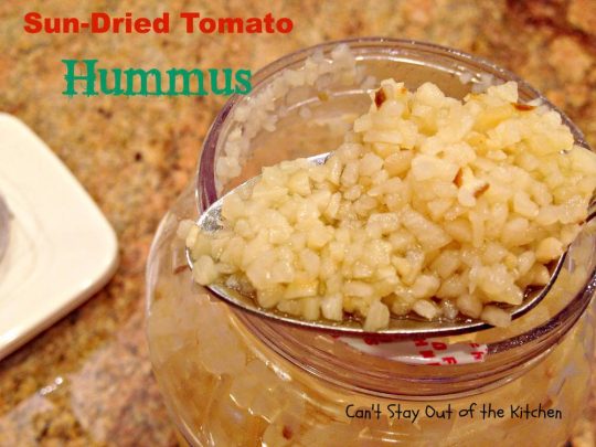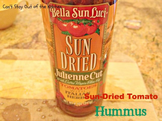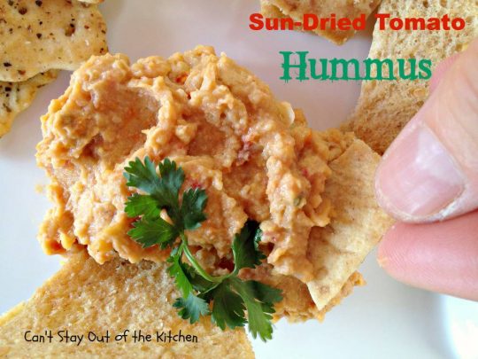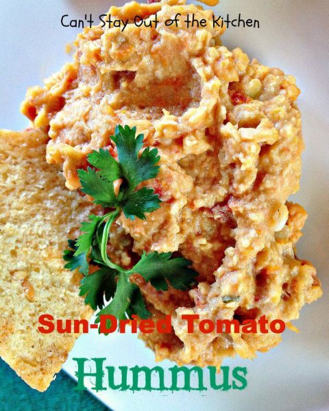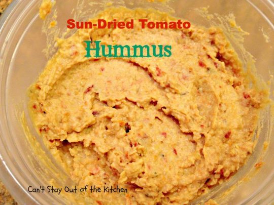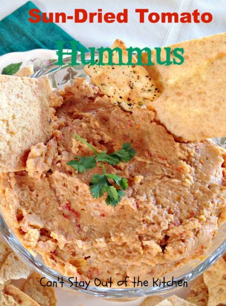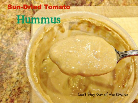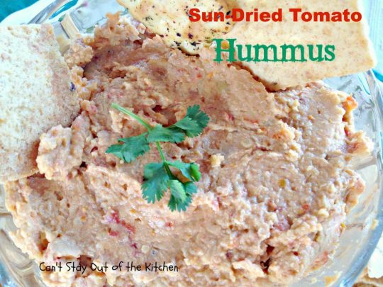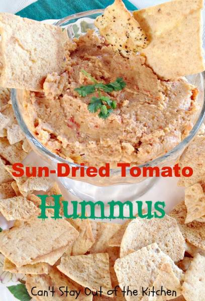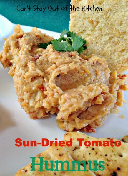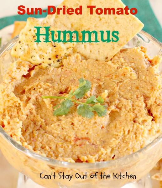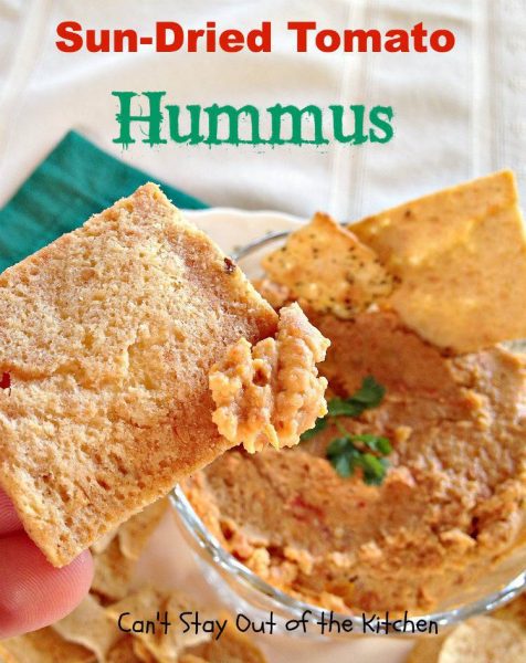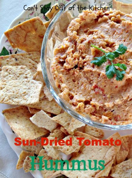 Sun Dried Tomato Hummus is fantastic with veggie dippers or crackers.
