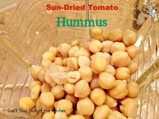 Sun Dried Tomato Hummus is so easy to make, too. You can whip up a batch of this great-tasting hummus in about 5 to 10 minutes. This is a great recipe to take to parties or serve whenever you’re serving finger foods.