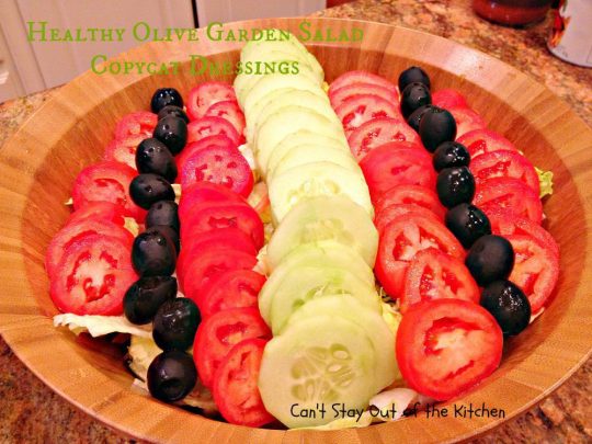 I was in the mood for Olive Garden Salad last week but I didn’t want to go out to eat. Yes, I had bottles of Olive Garden salad dressing in my refrigerator and on my pantry shelves. But I wanted to try a homemade version instead. I wondered how the copycat versions available tasted. Were they close to the original salad dressing in flavor?
