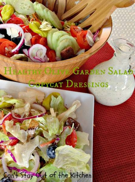 […] Healthy Olive Garden Salad Copycat Dressings – Can’t Stay Out … ā Then I substituted honey for the corn syrup in one recipe and honey for the sugar in the other recipe. I also substituted olive oil … black pepper help bring out the tastes you’re used to when eating Olive Garden’s … the recipes. HEALTHY OLIVE GARDEN SALAD & COPYCAT DRESSINGS (Recipe … […]
