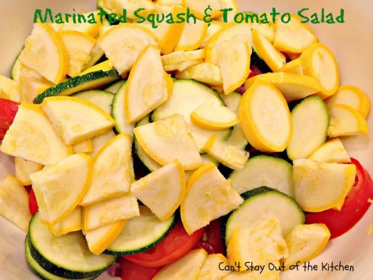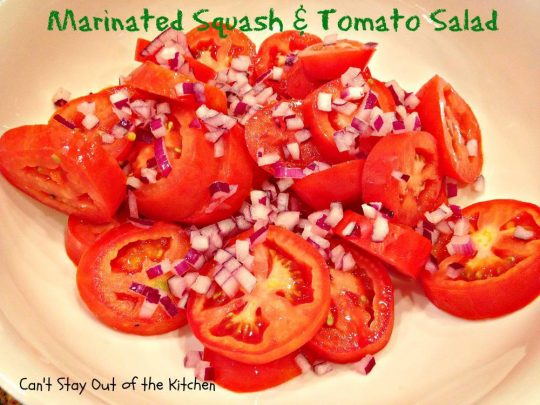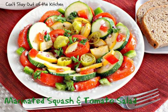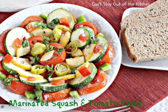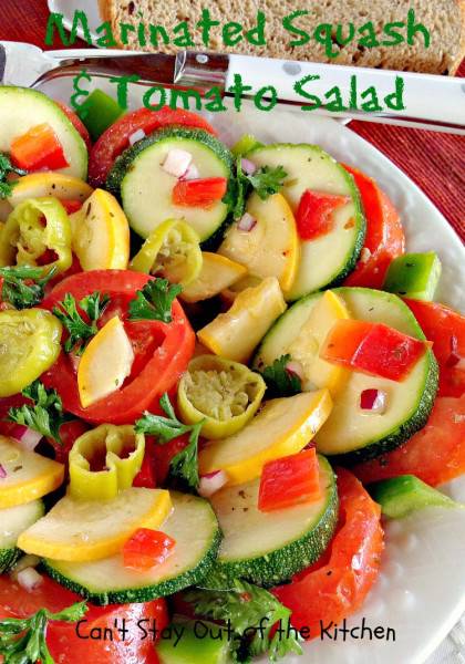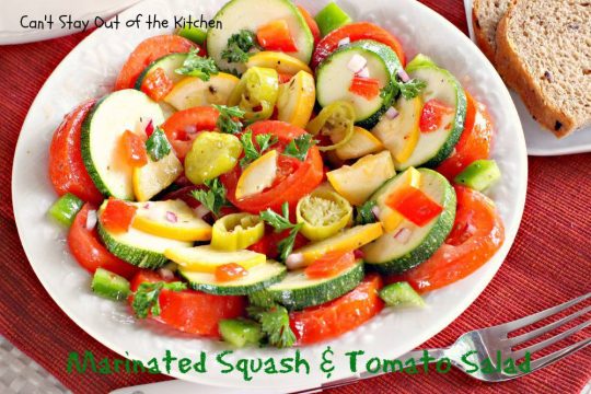 Marinated Squash and Tomato Salad complements any main dish meal. It’s also great to serve for lunch.