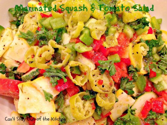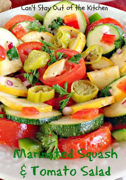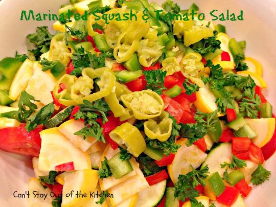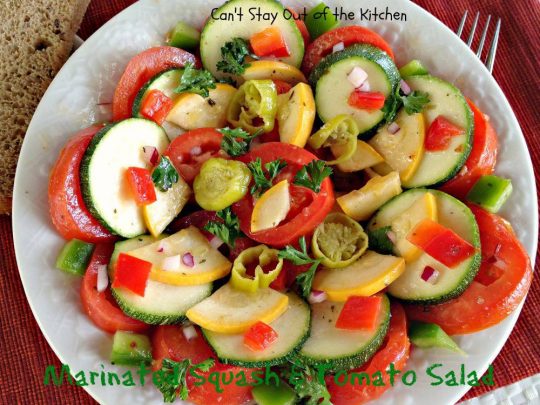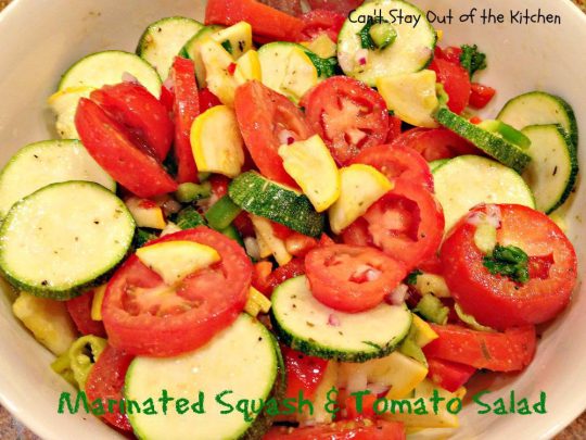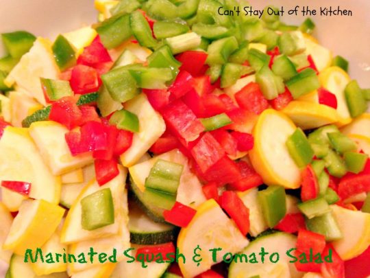 Marinated Squash and Tomato Salad is fantastic! It’s filled with all kinds of garden veggies.