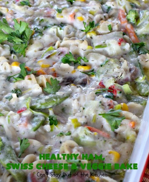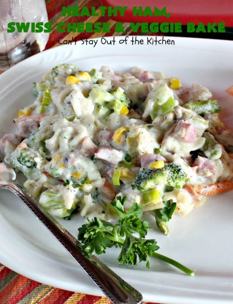 Healthy Ham, Swiss Cheese and Veggie Bake | Can't Stay Out of the Kitchen | healthier #casserole made with NO canned soups. #ham #veggies #pasta