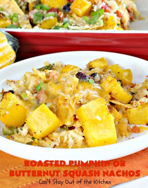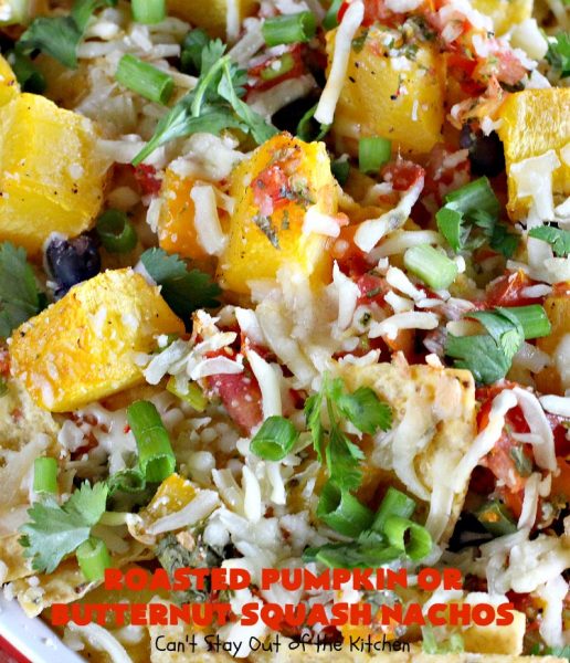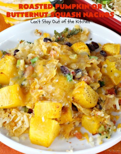 Roasted Pumpkin or Butternut Squash Nachos is a wonderful appetizer for company or tailgating.