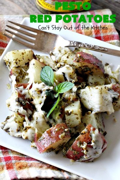 Don’t Pesto Red Potatoes look terrific? If you’re looking for a convenient and easy recipe for a potato side dish, Pesto Red Potatoes certainly fits the bill.