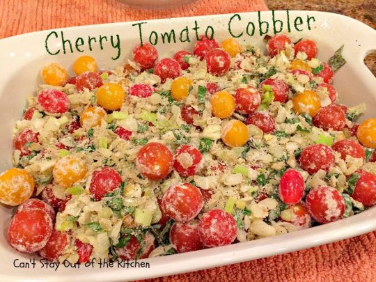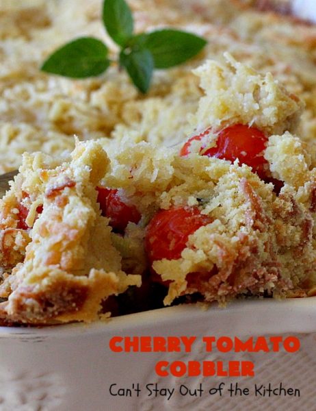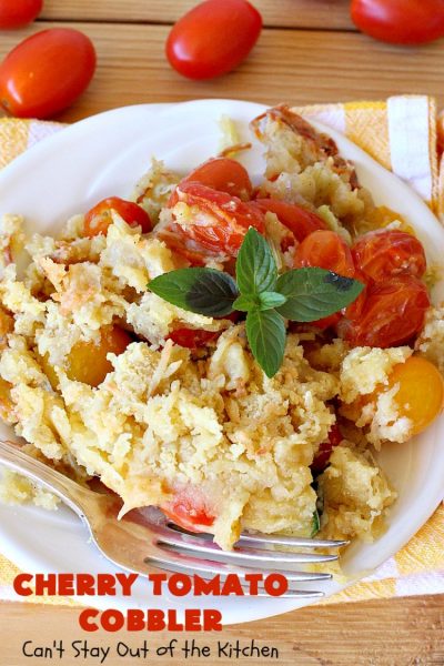Cherry Tomato Cobbler is an amazing casserole that’s wonderful for holiday menus.