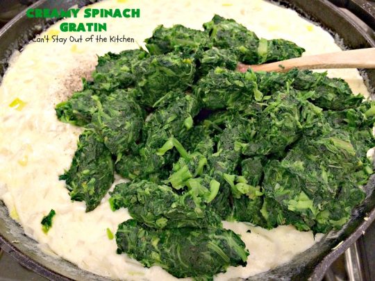 Creamy Spinach Gratin is a fabulous side dish casserole recipe for spinach.
