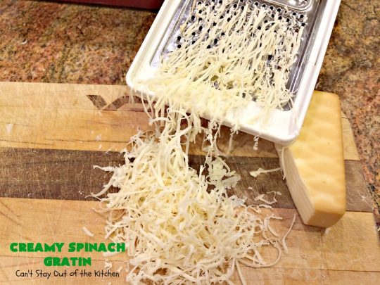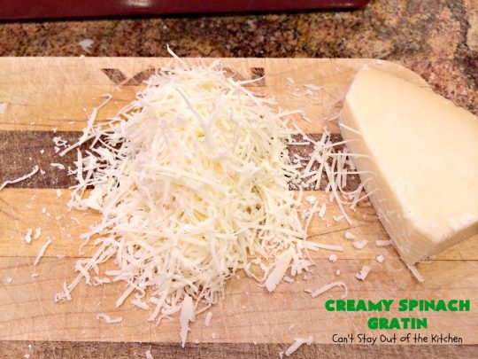 We loved this creamy cheesy spinach dish. It was marvelous. Having both parmesan and gruyere cheeses makes it incredibly cheesy and creamy.