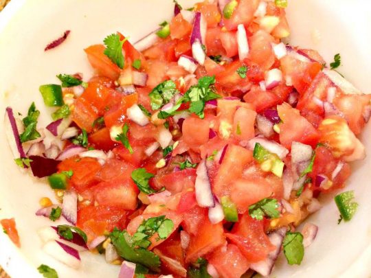 - Combine all ingredients for Pico de Gallo in a small bowl and refrigerate until ready to serve.