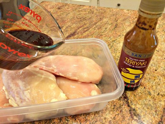 - Add teriyaki mixture and marinate in the refrigerator for an hour or two.