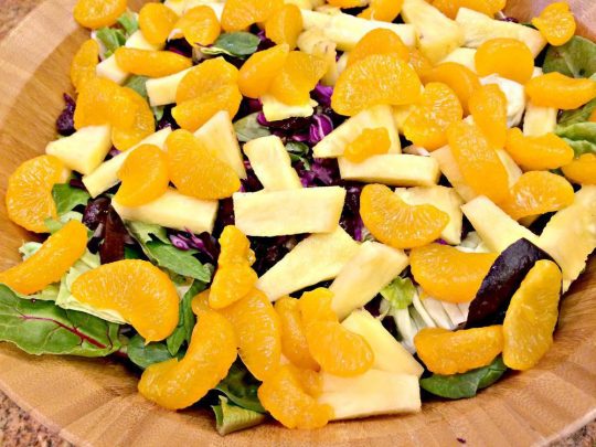 - Place about ¼ cup mandarin orange segments and pineapple on each salad.