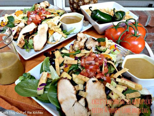 I believe you’ll love my version of Chili’s Caribbean Salad Copycat Recipe with Honey-Lime Dressing. Give it a try sometime when you are wanting a healthy, low calorie, gluten free main dish meal. I have a plate of this salad waiting for me in the refrigerator. I think I’m going to go get it! Yes, I’m sure I hear it calling my name. 🙂