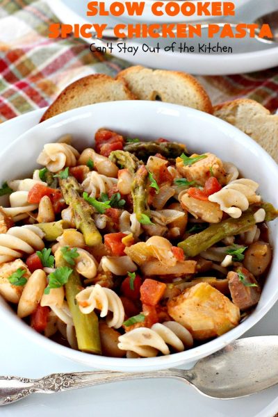 Slow Cooker Spicy Chicken Pasta is so tasty. It’s a great meal to serve on cold, winter nights.