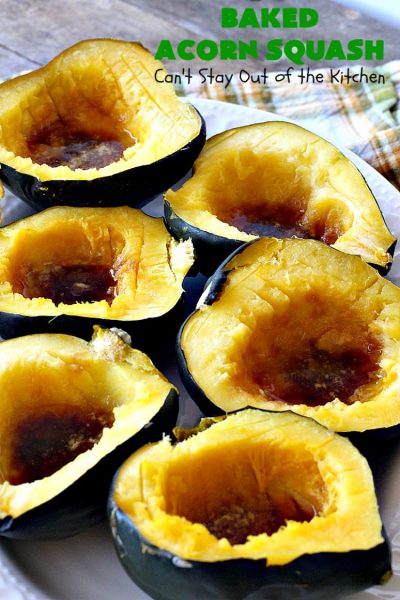 Baked Acorn Squash has always been a family favorite recipe. It’s fantastic served with Slow Cooker Onion-Mushroom Pot Roast and a loaf of homemade Oatmeal Nut Bread. š