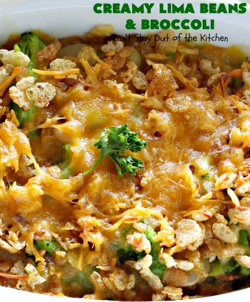 I was first introduced to this delicious casserole in the early 1990s. My catering partner made it for a large luncheon we were serving. I told her to make up a side dish and she brought this to serve. I was MORE than skeptical. Yes, I can do lima beans, and I can do broccoli, but TOGETHER???? Yikes, I secretly thought to myself. But she made me taste it and I’m so glad she did. It was spectacular and then some. And the crowd we were cooking for raved over it and kept coming back for seconds…and thirds!