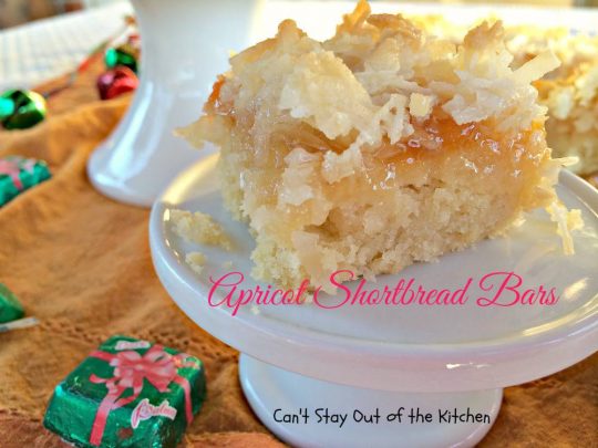 Apricot Shortbread Bars are great to take to holiday parties and share with friends.