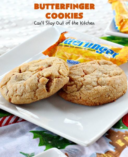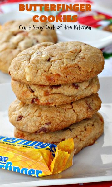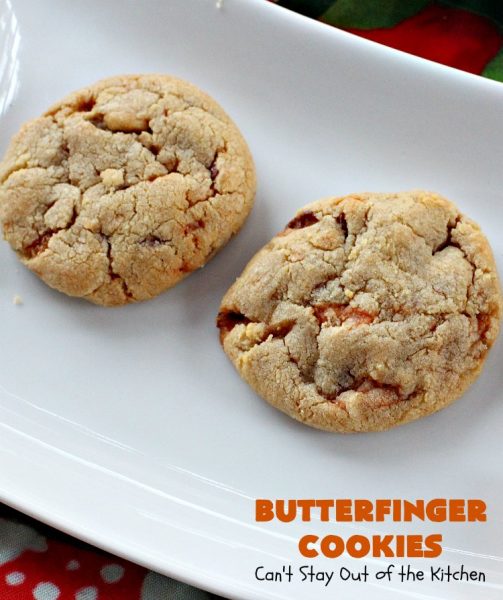 Butterfinger Cookies are divine. Grab a glass of milk and enjoy them until they disappear!