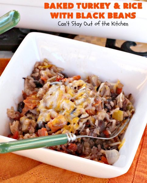 Baked Turkey and Rice with Black Beans is a delicious way to use up leftover turkey or chicken!