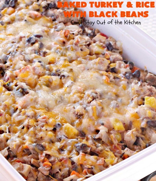 Baked Turkey and Rice with Black Beans is a very filling and satisfying one-dish meal. This recipe has double the complete proteins with both beans and rice, turkey and cheese.