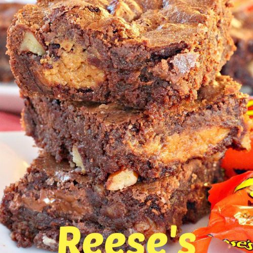 • Reese's Peanut Butter Cup Cheesecake Brownies – Can't Stay Out of the Kitchen
